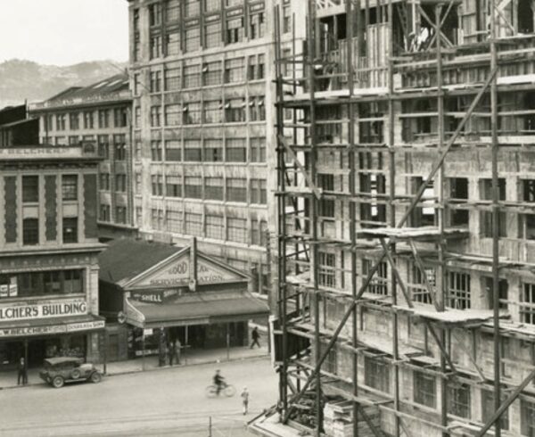 1. Hope Gibbons Building under construction. France, Thelma Edith Minnie, 1907-2000 : Photographs. Ref: PAColl-0125-01. Alexander Turnbull Library, Wellington, New Zealand. /records/23122866
